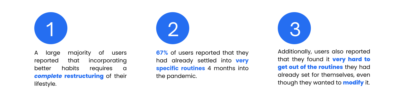 These are the three components of our solution that make it work for users to help them incorporate new, healthier habits into their lives with ease.