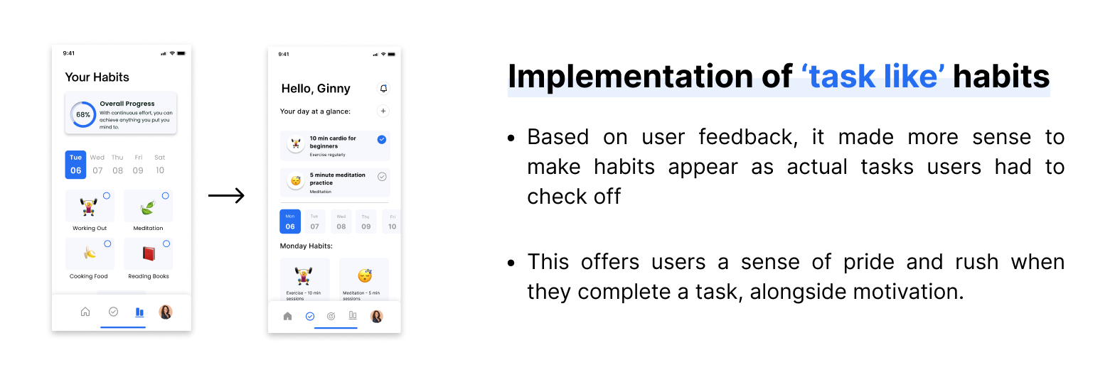 We started with a productivity app for busy students, but found it lacked real impact. User research revealed a deeper need: support for long-term habit formation, not quick fixes.