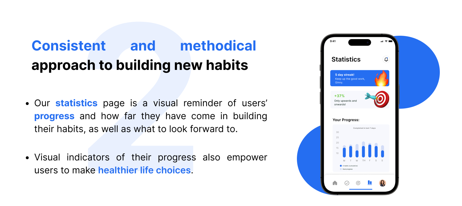 An all-in one habit tracking application that incorporates healthier habits into your daily routine gradually.